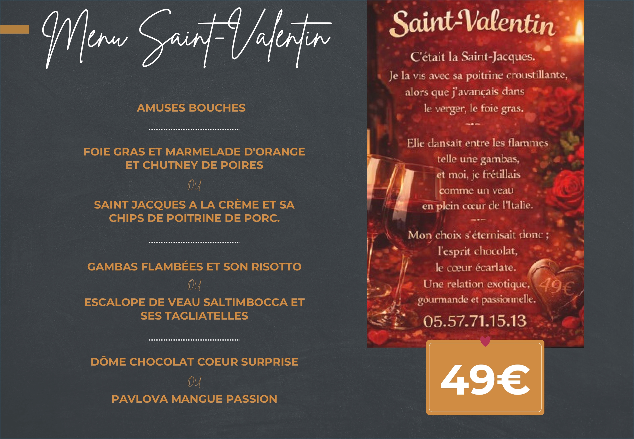 L’Entre 2 B, c’est avant tout une histoire de restauration authentique en plein cœur de la Gironde, où l’on célèbre la cuisine française avec passion. Situé à Marcheprime, notre restaurant se trouve à proximité de Biganos et du sud Bassin. Ici, rien n’est laissé au hasard : chaque plat est préparé avec amour, dans le respect des traditions, tout en y ajoutant une touche de modernité pour éveiller les papilles. Grâce à une sélection rigoureuse des produits, notamment issus du terroir de la région Aquitaine, on ressent immédiatement la différence dans l’assiette. L’ambiance oscille entre décontraction et raffinement, offrant à chaque repas un charme particulier. Que vous veniez en couple, en famille ou entre amis, l’Entre 2 B vous garantit un service soigné et une expérience mémorable. Les avis des habitués en témoignent : ici, convivialité et qualité sont toujours au rendez-vous.