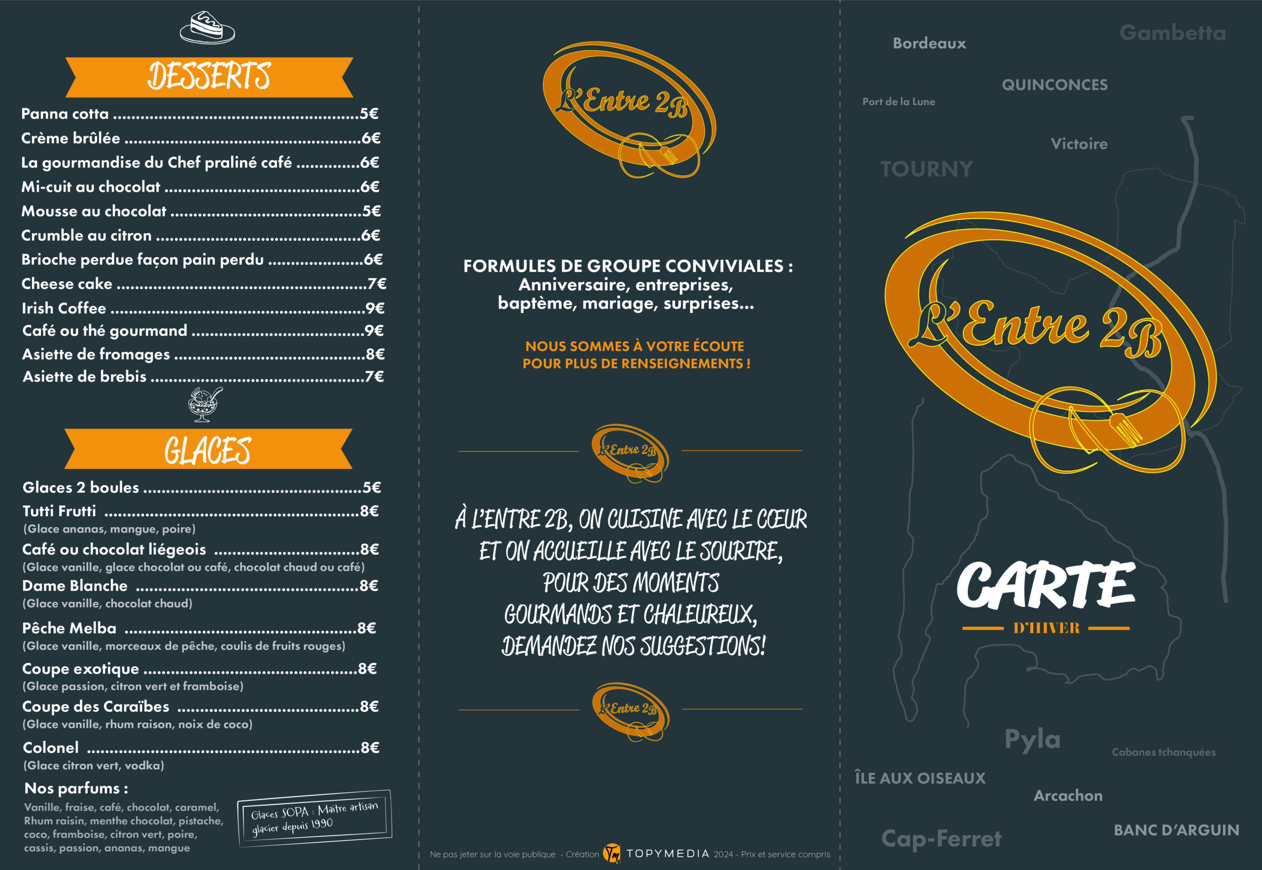 Découvrez le meilleur de la restauration au Bassin d’Arcachon dans notre Restaurant à Marcheprime, où nos plats sont préparés avec passion à partir de produits frais et locaux. Notre menu met à l’honneur les saveurs régionales et revisite les grands classiques pour régaler toutes les papilles. Venez vous régaler dans une ambiance conviviale et laissez-vous surprendre par notre sélection de mets authentiques.